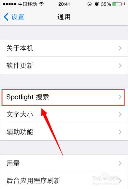 如果平時大家不怎么用到這個功能的話,建議可以關(guān)閉,點擊設(shè)置-通用-spotlight搜索關(guān)閉就可以了。